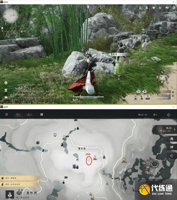1、首先我們需要前往佛光頂和郭嬸進(jìn)行對(duì)話,位置如下圖所示;