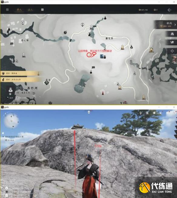 2、然后我們前往山頂神龕,在那附近找到千斤墜進(jìn)行解謎,獲得繡著祟字的奇怪錢袋;
