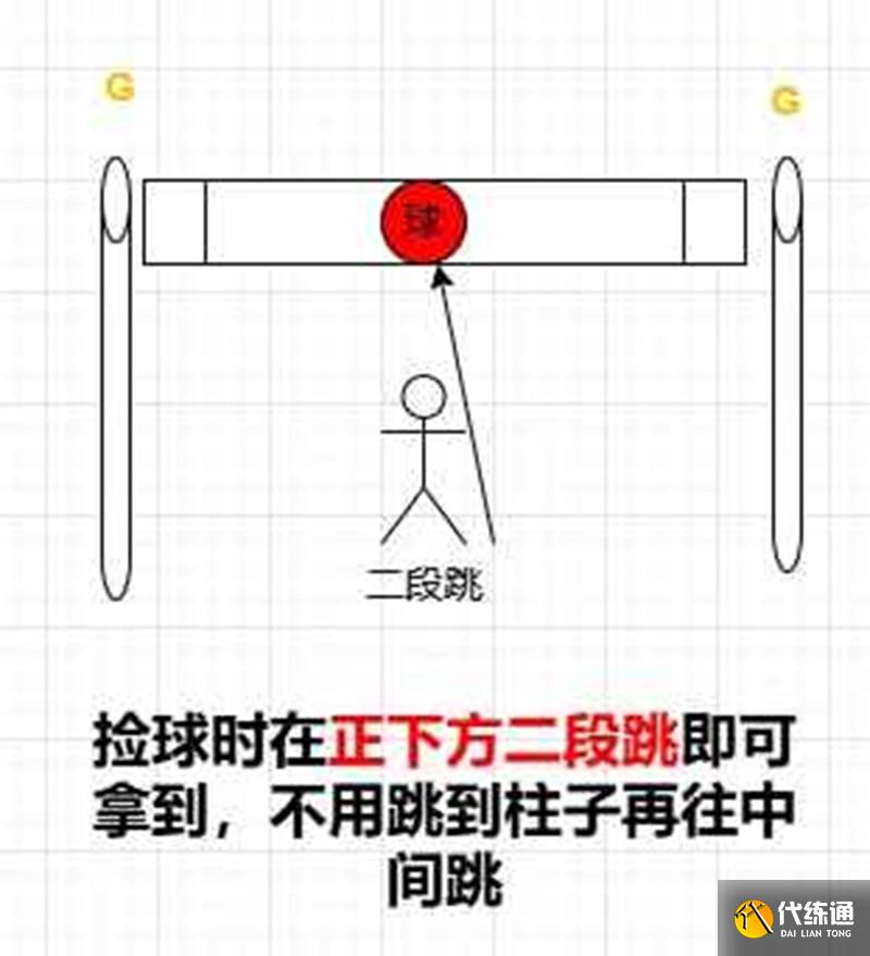 3、 擊飛后球會掉柱子邊上,二段跳即可拿回來,球撿到會隨機出現(xiàn)隊友身上