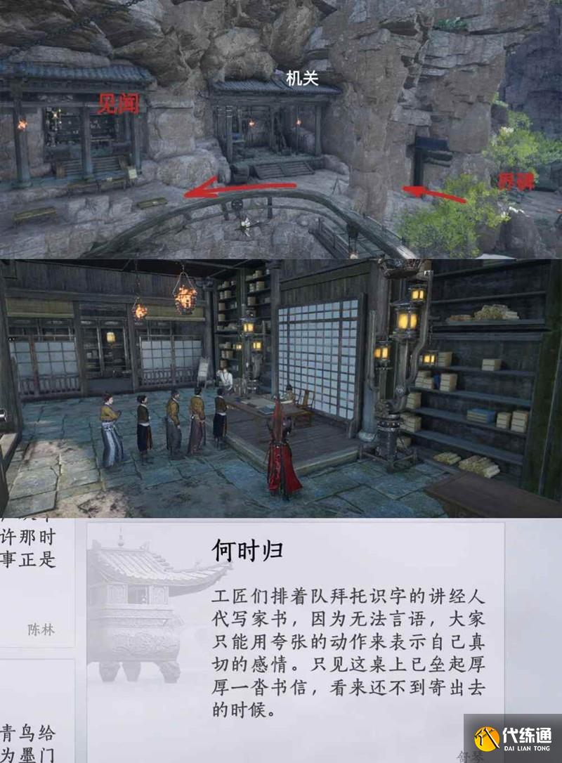從晴朗左手邊直接往下跳,落地后走石梯上樓,與屋內的NPC任然對話(時辰為戌時-卯時)