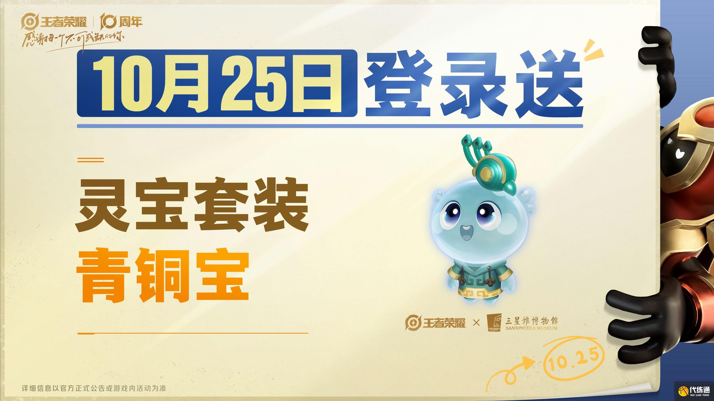 福利2:限時點券換10周年限定三星堆主題【傳說】皮膚:10.25開放兌換,皮膚與按鍵禮包990限時點券兌換