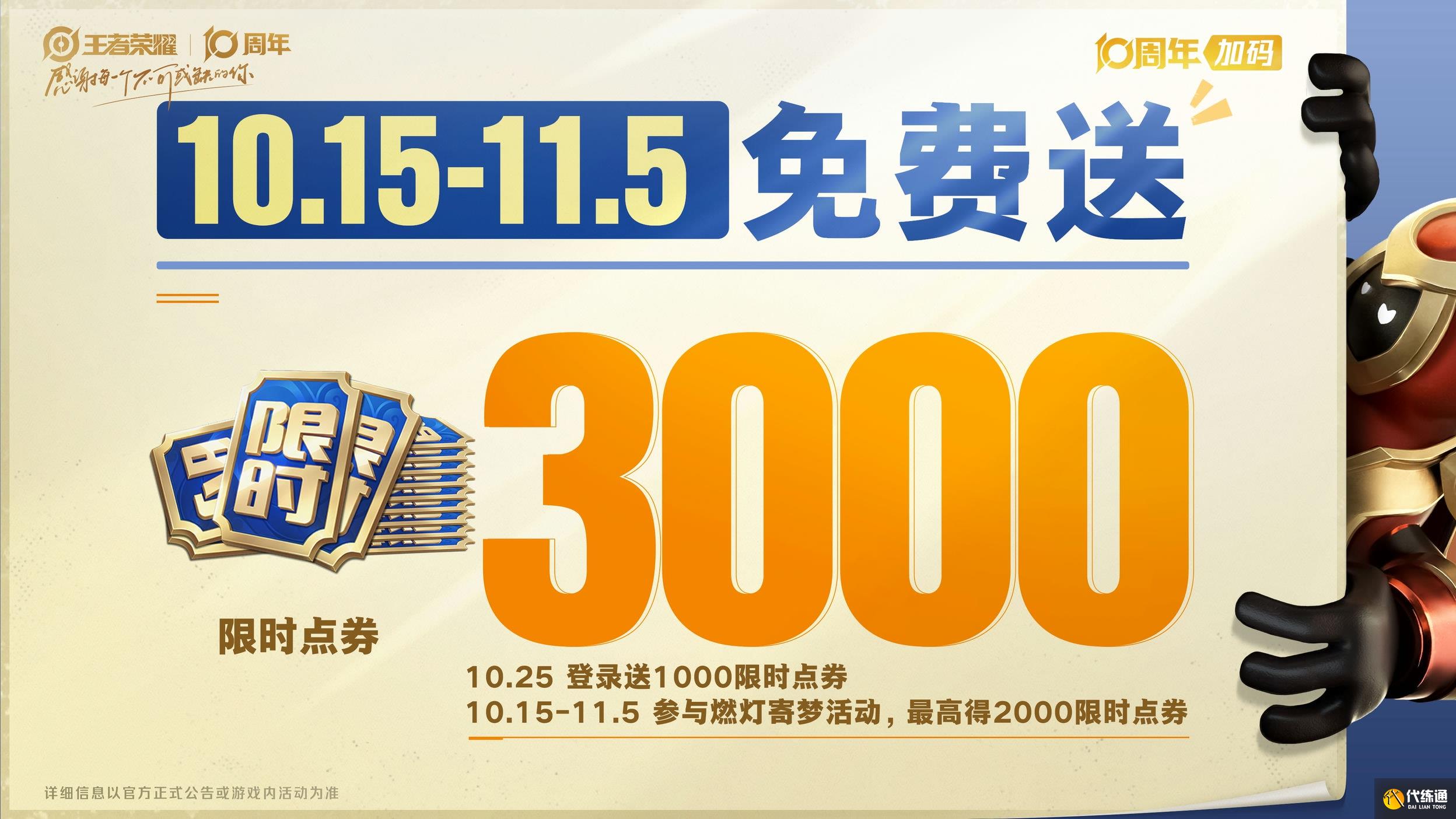 王者榮耀即將迎來十周年的慶典活動,本次活動期間可以獲得3000限時點券以及免費史詩皮膚哦,大家知道有哪些福利嗎?下面為大家帶來的具體內容,感興趣的玩家們千萬不要錯過哦!