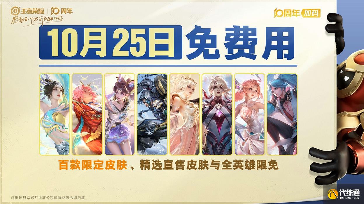 福利8:【十周年福利加碼】百款限定皮膚、精選直售皮膚與全英雄:10.25限免
