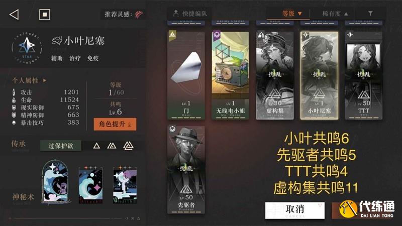 共鳴只需要能活就行,比如圖非六星角色只有共鳴4-6一鍵擺放。心相除了先驅者需要諾蒂卡專武,想提高容錯早一回合開大給TTT帶無韻律跳步(篤篤骨的),其他哪個耐活用哪個
