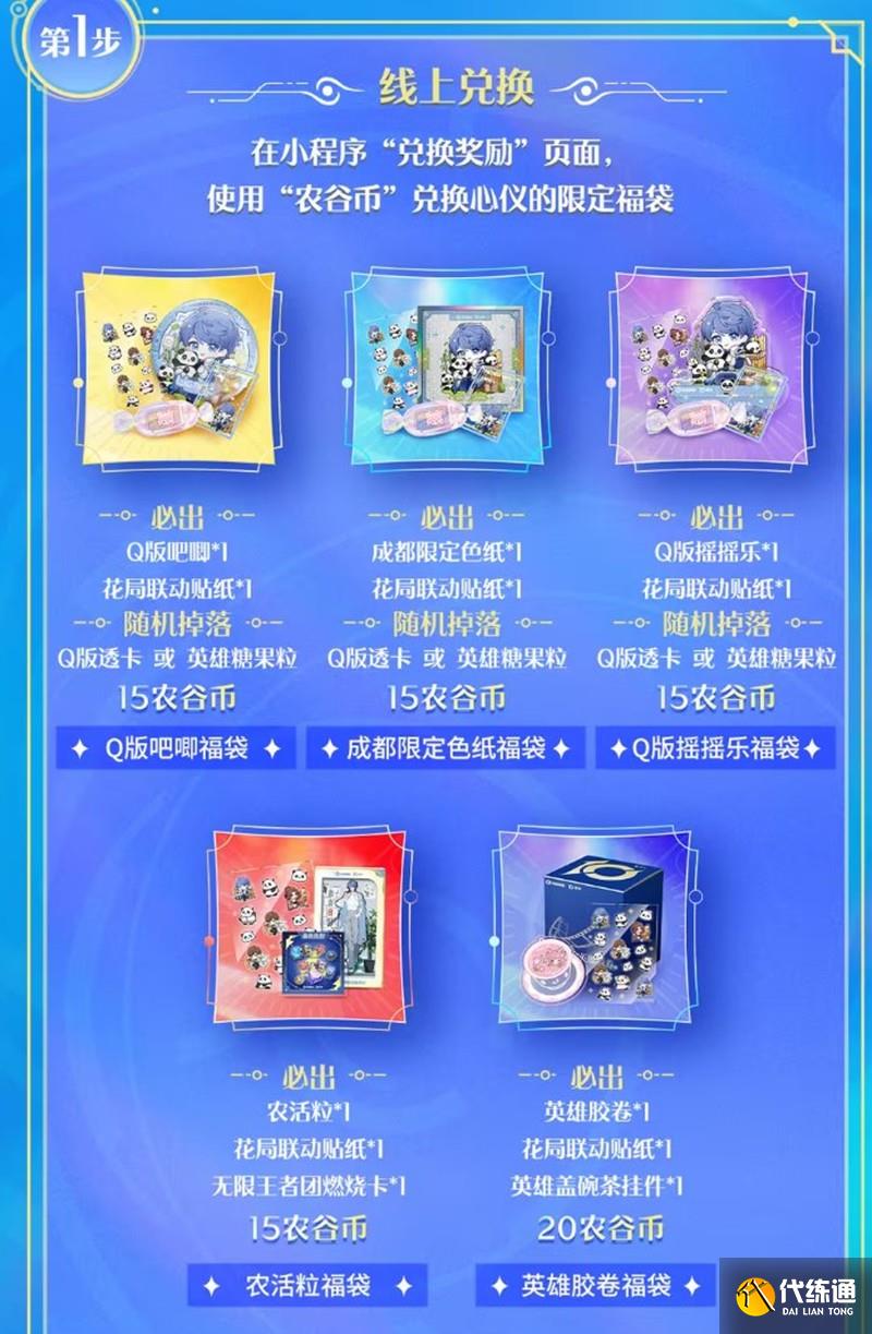 玩家在收集英雄卡的同時,還能獲得虛擬代幣“農谷幣”。這些代幣可以在線上通過小程序“王者營地”兌換十周年城市限定周邊福袋,包括英雄膠卷、Q版吧唧、成都限定色紙、Q版搖搖樂等豐富周邊。