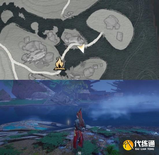 ②傳送深澤天涯客,順著小路走到旁邊的小島上(天涯客和主線任務之間的小島),在水邊拾取「木材」