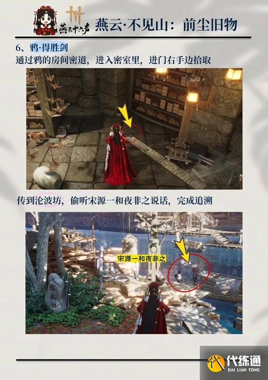 通過鴉的房間密道,進入密室里,進門右手邊拾取,傳到淪波坊,偷聽宋源一和夜非之說話,完成追溯