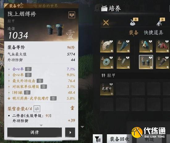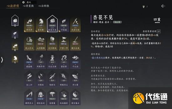 面板:三率只要會心黃字75,其他會意精準通通屬于無效詞條。因為奶奶默認滿精準不會丟失也不會觸發會意。達成后優先追求大小外和玩家增效、傘扇增效、大小牽絲 。定音左邊外功穿透右邊扇武學加成或者治療(重擊)加成。不要任何外系屬攻,吃不到一點加成。