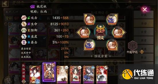 桃花:速度160,生命/治療指標,御魂帶招財/遺念火/珍珠,有條件優先做治療指標,治療指標需要滿暴,保證桃花生命最高或者次高。