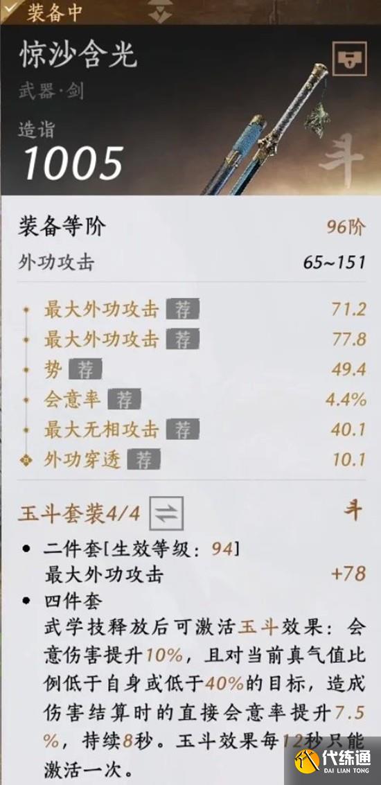 首先就是新版本boss傷害問題,那可是都有高額持續(xù)爆發(fā)傷害的boss,玉斗套要求什么?對真氣比例低于自己或者40%的目標(biāo)生效7.5直接會意率。但是想一直吃7.5的直接會意加成,就需要你去卸勢或者躲避所有掉真氣的機(jī)制,不然這個(gè)加成就很難持續(xù)吃到。因?yàn)閎oss隨便一個(gè)攻擊都能削你半管真氣。