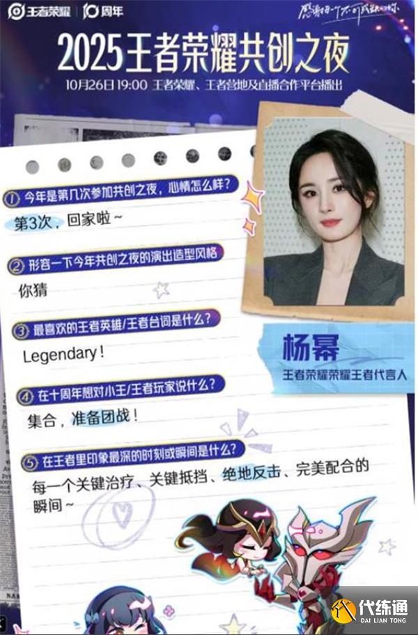 10月26日20:00,【王者榮耀2025共創(chuàng)之夜】將正式開幕。無論你是老玩家還是新召喚師,都能在這場盛典中找到屬于自己的回憶與感動。讓我們一同迎接王者榮耀的下一個十年,共赴這場特別的十年之約。