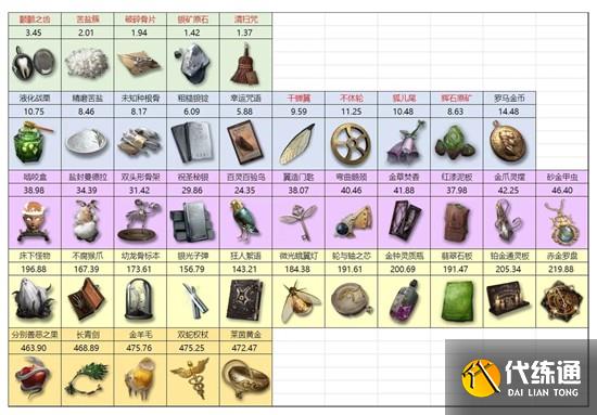 材料:藍箱羅馬金幣,紫箱砂金甲蟲,金箱赤金羅盤/鉑金通靈板,橙箱都行。其他材料價值可以看價值表。