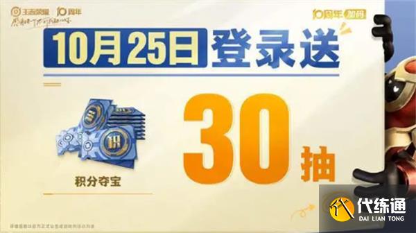 在昨天的第一篇推文中,妲己寶寶提到10月25日登錄就領_____奪寶30抽。