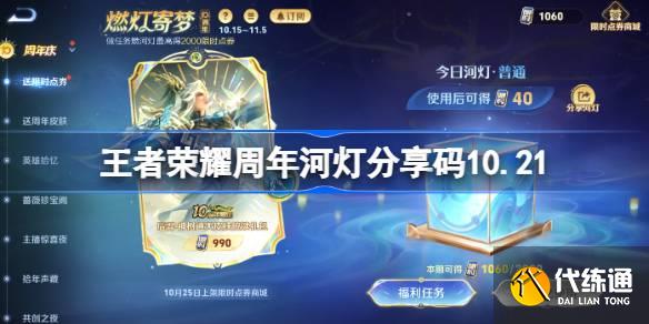 王者榮耀周年河燈分享碼最新 王者榮耀河燈分享碼10.21