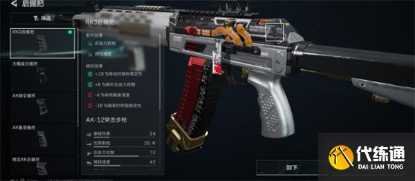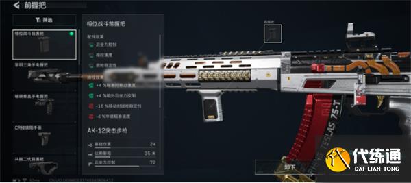 幾乎無負面屬性,能同時提升后坐力控制、操控速度與穩定性,是AK12的最優通用握把。