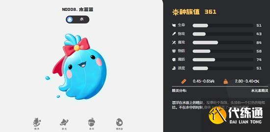 水藍藍是水屬性初始精靈,主打控制與節奏掌控。其特性“浸潤”在命中敵人后可降低目標20%攻速,該效果最多可疊加至50%,顯著削弱敵方輸出節奏。這一機制使水藍藍在面對高攻速敵人時尤為有效,能夠從根本上打亂對手的進攻節奏,為己方創造反擊機會。