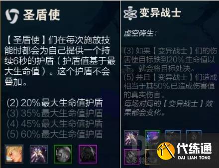 羈絆組成:3圣盾使 3變異戰(zhàn)士 2戰(zhàn)斗學(xué)院 2槍手