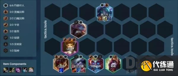 陣容羈絆:6約德爾2白魔法師2黑魔法師2學者2極客1大魔王