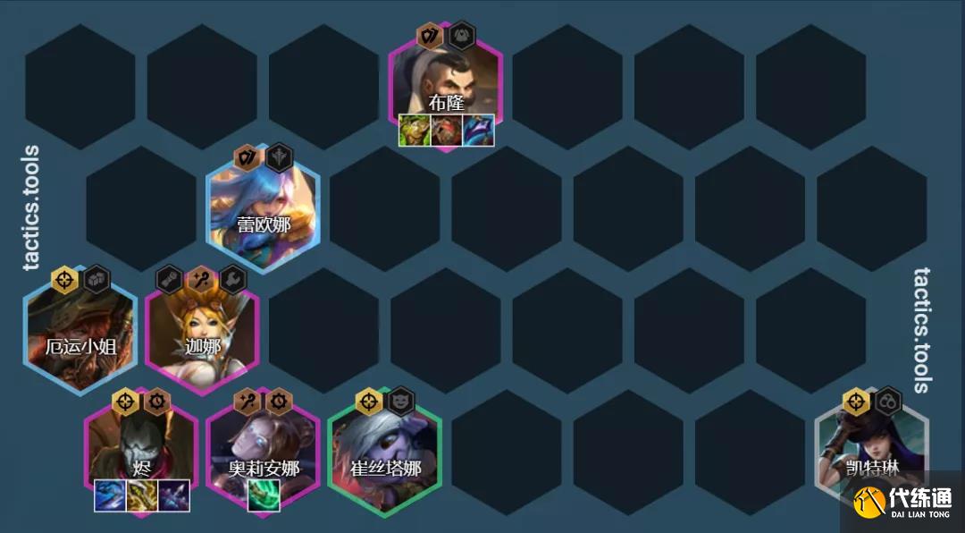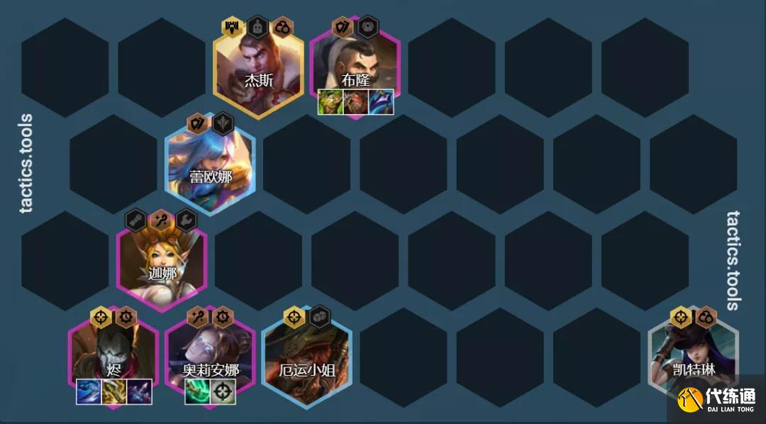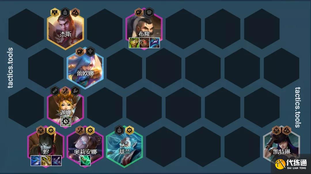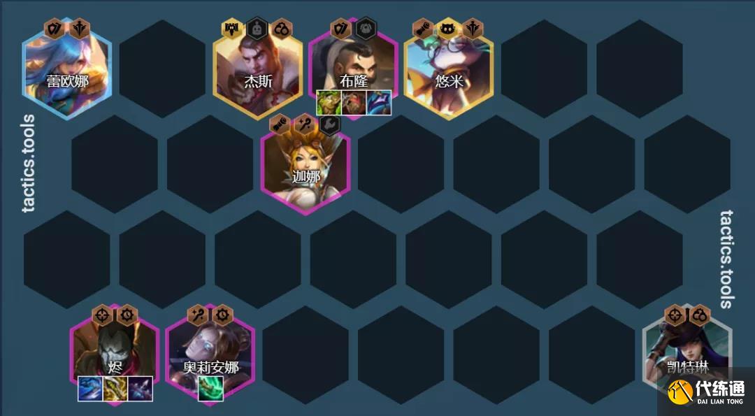 陣容組成:凱特琳、蕾歐娜、布隆、燼、奧利安娜、迦娜、杰斯、悠米