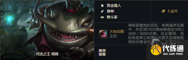 塔姆是云頂之弈手游S6最快樂的一張五費卡,收團塔姆可以吞噬己方棋子,并獲得棋子的某項屬性,因此塔姆的上限非常高。其次塔姆的技能傷害非常高,吞死敵人不是得錢就是得裝備。塔姆S6是斗槍體系非常強勢的前排,順風用來單掛也很不錯。