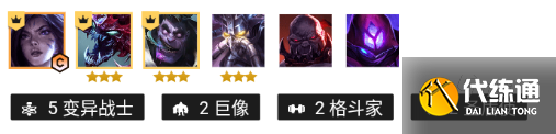 陣容羈絆:五變異戰士兩巨像兩格斗家兩圣盾使。