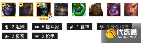 陣容羈絆:六格斗兩槍手兩姐妹三煉金兩極客一食神。