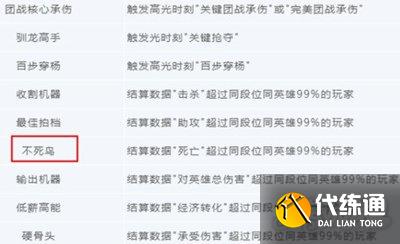 【不死鳥】:結算數據‘死亡’超過同段位英雄99%的玩家。