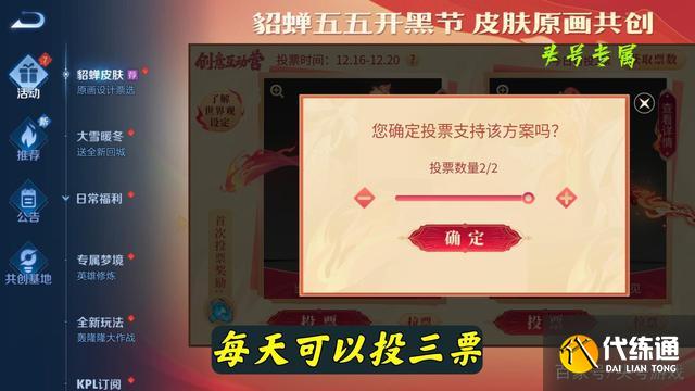 每年的五五開黑節(jié)都是王者榮耀重磅節(jié)日之一,在五五開黑節(jié)期間將會上線很多的活動,而且還會有全新的五五開黑節(jié)標(biāo)簽新皮膚與大家見面,在今年的五五開黑節(jié)期間,王者榮耀為全新的五五開黑節(jié)皮膚制定了一個共創(chuàng)計劃,新的五五開黑節(jié)皮膚由投票活動決定,經(jīng)過激烈的角逐,最終貂蟬獲得了明年五五開黑節(jié)皮膚的歸屬。所謂的皮膚共創(chuàng)計劃,就是像已經(jīng)上架的三款皮膚一樣,聽從玩家的想法,一起共創(chuàng)這款新皮膚。