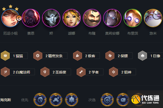 1貓貓、2精密發條、2極客、2保鏢、1巨像、2白魔法師、2圣盾使、2學者、2狙神