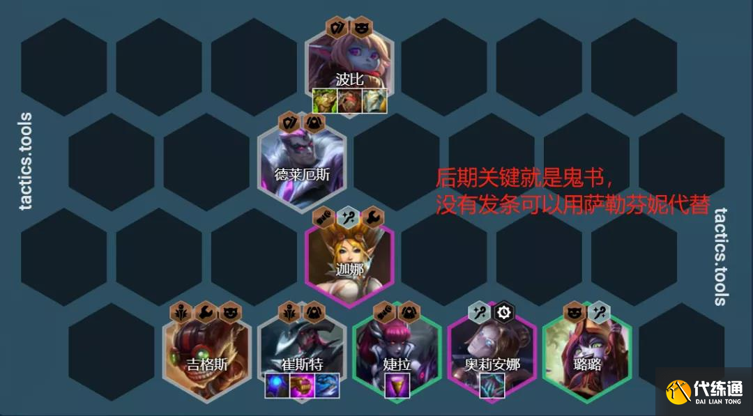 7人口補(bǔ)充風(fēng)女湊出2學(xué)者2極客2白魔法羈絆,這里優(yōu)先推薦風(fēng)女>發(fā)條,最主要的原因是波比這張卡牌不是特別肉,如果沒有3神裝就更加脆了,我們需要風(fēng)女的技能來補(bǔ)充陣容的回復(fù)以及保護(hù)卡牌。盡量讓卡牌多釋放技能。