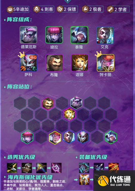 辛迪加刺這次更新的坦度略有下降,但陣容上限十分高,如果能有2星阿卡麗,吃分與吃雞會十分穩(wěn)定,且主養(yǎng)小丑在前中期過渡相當(dāng)穩(wěn)定,但陣容相當(dāng)吃5階段運(yùn)營與阿卡麗能否2星。