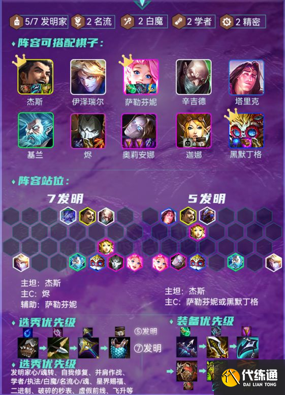 裝備上主坦杰斯建議龍牙、反甲、狂徒,7發(fā)明下主C燼建議輕語、無盡、水銀或颶風(fēng)與巨殺,如果是薩勒芬妮或奧莉安娜建議青龍刀、鬼書+法強(qiáng)裝備。