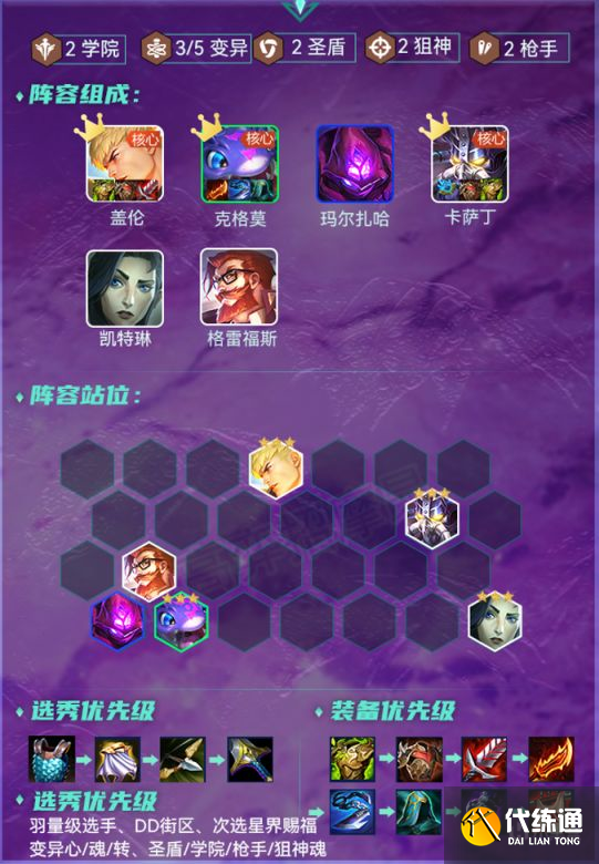 陣容對海克斯強化要求十分低,大部分都能用,最優格斗家/煉金之心/魂,神槍手 泰坦之勁,高端購物等。