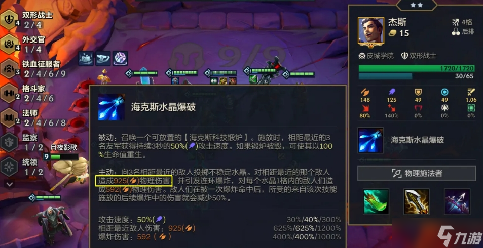 若能出齊三件輸出裝,它基本上每場都能達到萬傷以上。玩家可用小炮、斯維因以及安倍薩等等,組成4外交4雙形加上2鐵血的羈絆。5費卡除了杰斯以外,還需加上鐵男或者賽薇卡。誰先追到二星就掛水,等到將杰斯追到二星再下掉飛機。站位的時候可讓蓋倫、蜘蛛、賽薇卡以及船長站在前面,像安倍薩這類可單獨放在第二。至于斯維因單獨放在后排的一側,讓杰斯、小炮等在后面沉底。此類高費陣容中的主C是斯維因,用藍霸、秘典加上珠光是最優的。 第二個蓋倫需至少有兩件肉裝,等第三個才考慮杰斯。4-6的時候先看看升8有沒D出杰斯,有就給它用上超高速或者終結者等等。運氣差沒D杰斯的情況下,把根深、巨人或者壁壘給到蓋倫使用。蓋倫沒追到二星的情況下,選絕不浪費或者冰霜給烏鴉用。建議在開局送了烏鴉,且有大棒或者拳套的情況下再沖。前期用4征服、4法師或者4檢查等羈絆過渡,烏鴉沒來上拉克絲穿裝備打工。開局物理裝的情況下,用小炮或者船長等穿杰斯裝備打工。保證連勝的情況下,等到4-2升8并大D。將4外交開出來之后,追出二星烏鴉、飛機以及蓋倫等等。6-2的時候升9追二星杰斯,就可以下飛機并在后排輸出了。 "> 外交體系本身的上限要略低于執法蔚,但它的下限有所補足。且在搭配上面的選擇會更多一些,不容易被同行克制住。最后能追到二星杰斯,開出4雙形羈絆就能齊平執法蔚了。杰斯爆破被動可進行鍛爐召喚,并給毗鄰三個友方增加百分之五十攻速。鍛爐被敵方棋子毀掉的情況下,會保持百分百的血量重生。主動技則可鎖定最近的三 閱讀全文...