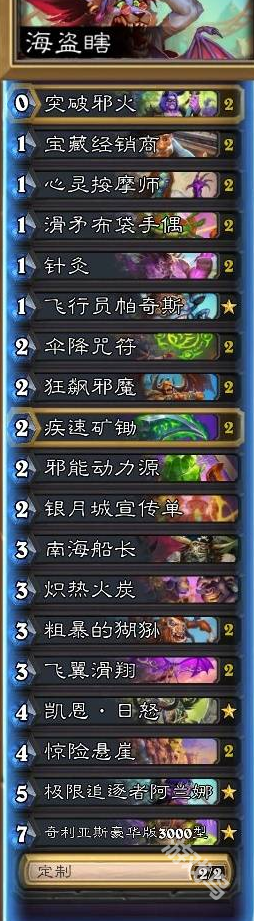 爐石傳說深暗領域海盜瞎卡組分享。深暗領域版本上線了,很多玩家們不清楚海島瞎卡組怎么構成,下面就讓小編來告訴大家,有需要的話可以和小編一起來看看,希望可以幫助到大家。爐石傳說深暗領域海盜瞎卡組分享1、大家可以起手有一費留一費,第一張有滑翔就留。2、寶藏海盜可以配合地標穩(wěn)定打4。3、可以先讓海盜戰(zhàn)場利用 閱讀全文...