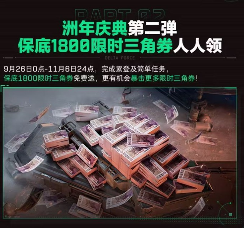 三角洲行動(dòng)一周年送多少劵?隨著三角洲行動(dòng)一周年活動(dòng)開(kāi)啟,官方也是開(kāi)啟狂送三角劵模式,那么三角洲行動(dòng)一周年送多少劵?有哪些福利活動(dòng)?下面就跟隨小編的腳步來(lái)一起看看吧。 三角洲行動(dòng)一周年送多少劵? 答:活動(dòng)期間完成任務(wù)保底可得3900張限時(shí)三角券。此外,還有其他額外的三角券獎(jiǎng)勵(lì),例如在9月26日至1 閱讀全文...