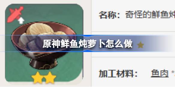 原神有很多食物可以制作,可以為旅行者提供一些生命回復,體力恢復以及其他增益效果,其中的鮮魚燉蘿卜大家知道怎么做嗎?下面為大家帶來的具體內容,感興趣的玩家們千萬不要錯過哦! 原神鮮魚燉蘿卜怎么做? 名稱:奇怪的鮮魚燉蘿卜 星級:二星 加工材料:魚肉*2 白蘿卜*2 鹽*1 描述:葷素搭配的菜肴。 閱讀全文...