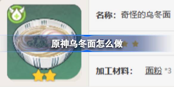 原神有很多食物可以制作,可以為旅行者提供一些生命回復,體力恢復以及其他增益效果,其中的烏冬面大家知道怎么做嗎?下面為大家帶來的具體內容,感興趣的玩家們千萬不要錯過哦! 原神烏冬面怎么做? 名稱:奇怪的烏冬面 星級:二星 加工材料:面粉*3 海草*1 魚肉*1 描述:韌勁十足的面食。過于寡淡的面 閱讀全文...