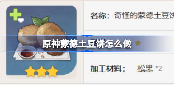 原神有很多食物可以制作,可以為旅行者提供一些生命回復,體力恢復以及其他增益效果,其中的蒙德土豆餅大家知道怎么做嗎?下面為大家帶來的具體內容,感興趣的玩家們千萬不要錯過哦! 原神蒙德土豆餅怎么做? 名稱:奇怪的蒙德土豆餅 星級:三星 加工材料:松果*2 土豆*1 果醬*1 描述:土豆做的炸餅。據 閱讀全文...