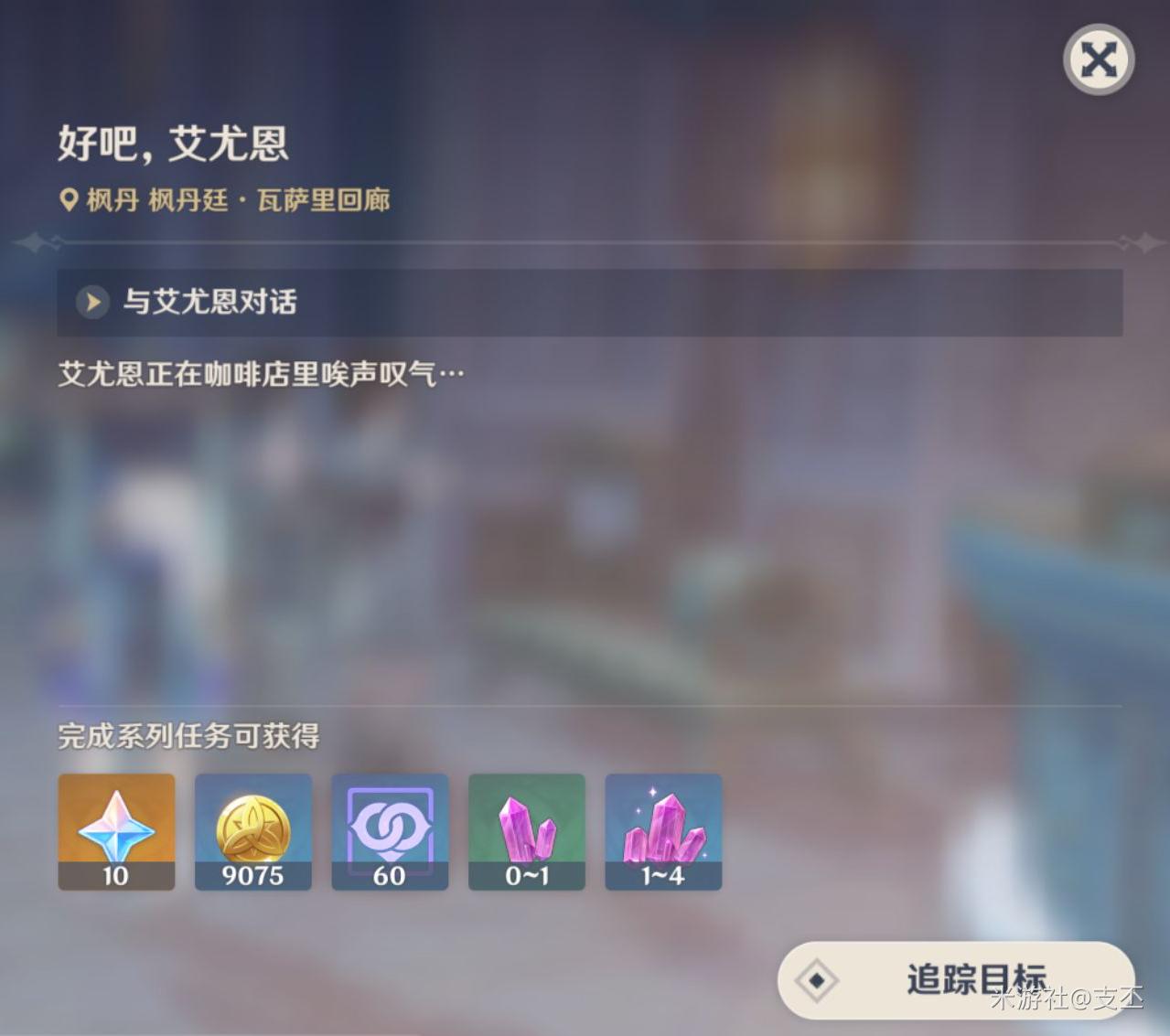 原神楓丹已經上線一段時間了,在楓丹地圖上有很多新的委托任務,比如好吧艾尤恩任務,那么原神好吧艾尤恩任務怎么做?下面就給大家帶來原神好吧艾尤恩任務攻略。 原神好吧艾尤恩任務攻略 來到楓丹廷咖啡廳,找艾尤恩對話,獲取任務 對話中,艾尤恩還在思考這體制內的工作的意義? 對話后,調制一杯咖啡給艾尤恩 閱讀全文...