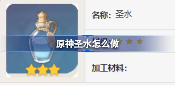 原神有很多食物可以制作,可以為旅行者提供一些生命回復(fù),體力恢復(fù)以及其他增益效果,其中的圣水大家知道怎么做嗎?下面為大家?guī)淼木唧w內(nèi)容,感興趣的玩家們千萬不要錯過哦! 原神圣水怎么做? 名稱:圣水 星級:三星 加工材料:無 描述:質(zhì)地透亮,無色無雜質(zhì)的一小瓶液體。看起來與清泉水無異的這一瓶,真的 閱讀全文...