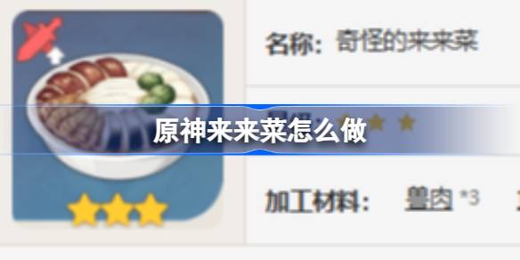 原神有很多食物可以制作,可以為旅行者提供一些生命回復,體力恢復以及其他增益效果,其中的來來菜大家知道怎么做嗎?下面為大家帶來的具體內容,感興趣的玩家們千萬不要錯過哦! 原神來來菜怎么做? 名稱:奇怪的來來菜 星級:三星 加工材料:獸肉*3 魚肉*3 稻米*3 豆腐*1 描述:用料豐富的菜肴。所 閱讀全文...