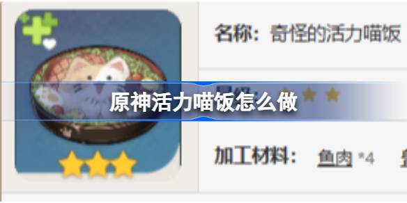 原神有很多食物可以制作,可以為旅行者提供一些生命回復,體力恢復以及其他增益效果,其中的活力喵飯大家知道怎么做嗎?下面為大家帶來的具體內容,感興趣的玩家們千萬不要錯過哦! 原神活力喵飯怎么做? 名稱:奇怪的活力喵飯 星級:三星 加工材料:魚肉*4 獸肉*2 海草*2 稻米*1 描述:外形可愛的主 閱讀全文...