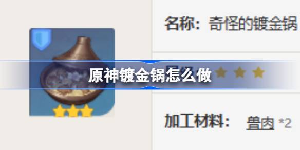 原神有很多食物可以制作,可以為旅行者提供一些生命回復(fù),體力恢復(fù)以及其他增益效果,其中的鍍金鍋大家知道怎么做嗎?下面為大家?guī)淼木唧w內(nèi)容,感興趣的玩家們千萬不要錯過哦! 原神鍍金鍋怎么做? 名稱:奇怪的鍍金鍋 星級:三星 加工材料:獸肉*2 帕蒂沙蘭*2 香辛料*1 洋蔥*1 描述:燉煮而成的肉 閱讀全文...