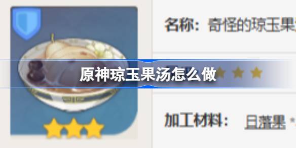 原神有很多食物可以制作,可以為旅行者提供一些生命回復(fù),體力恢復(fù)以及其他增益效果,其中的瓊玉果湯大家知道怎么做嗎?下面為大家?guī)淼木唧w內(nèi)容,感興趣的玩家們千萬不要錯過哦! 原神瓊玉果湯怎么做? 名稱:奇怪的瓊玉果湯 星級:三星 加工材料:日落果*3 糖*1 清心*1 琉璃袋*1 描述:傳統(tǒng)的璃月 閱讀全文...