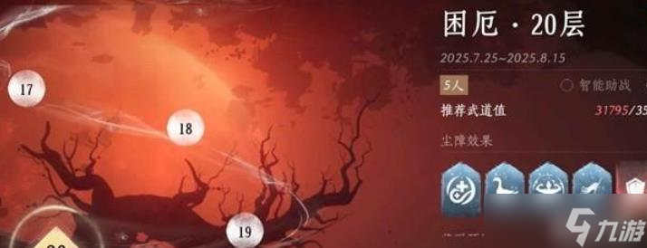 燕云十六聲游戲中會有多種不同的玩法風格,如劍術、武技、甚至是太極等,可以混合搭配劍法、近身戰等來戰斗。游戲暑期版本新增了武道心宮玩法,那么其中的困厄15和困厄20應該怎么打呢?下面和九游小編一起來看看吧 15層 1:進入倒計時5s奶媽可加傷一次,進去還可以加一次。倒計時2s 閱讀全文...
